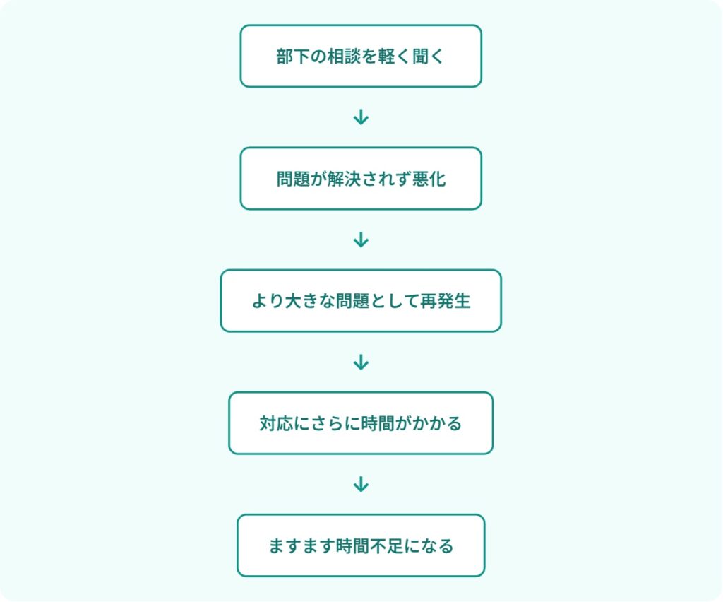 時間がないからと部下の話を適当に聞き流すと、以下の悪循環が生まれます: